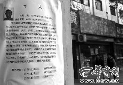 有人把尋人啟事張貼在失蹤者前妻店附近電線桿上