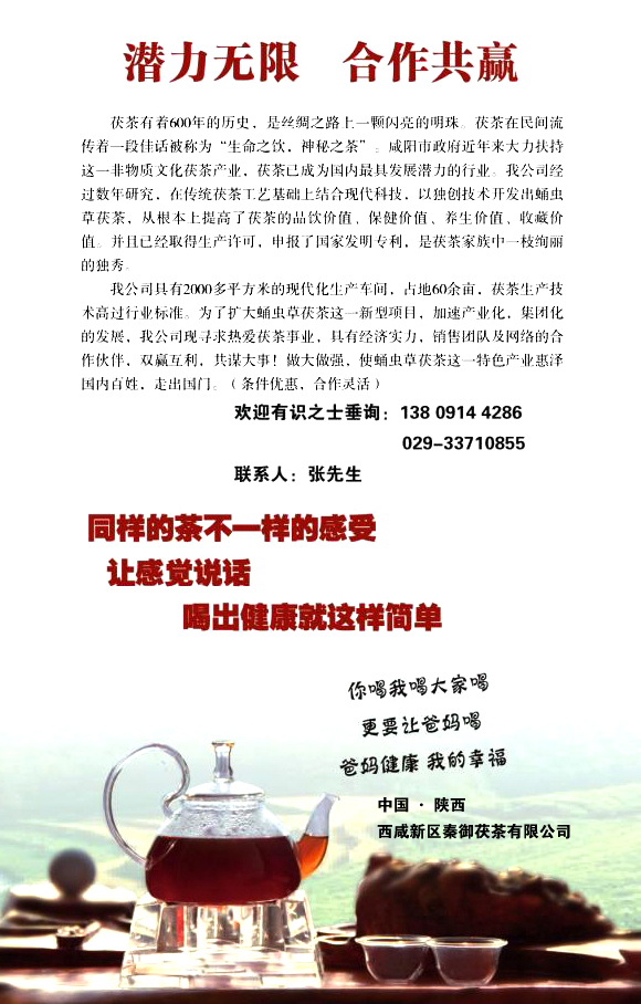 西咸新區(qū)秦御茯茶有限公司歡迎有識(shí)之士合作共贏
