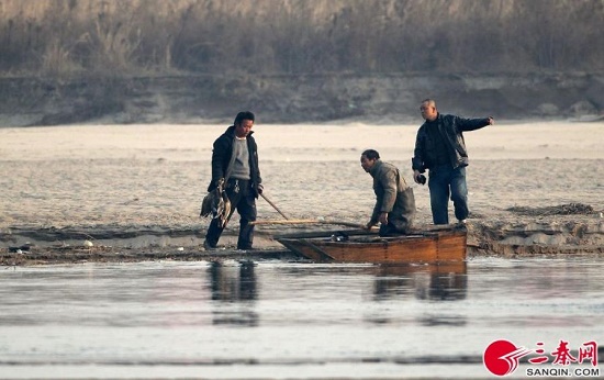 1月3日,本報(bào)記者接到西安鳥友反映,在西安北郊和咸陽(yáng)交界的渭河濕地,有人大肆投毒,捕殺來(lái)渭河越冬的候鳥。記者趕到現(xiàn)場(chǎng)后,看到渭河灘涂中有三名男子正在河中穿著雨褲、劃著小船,撿拾死在水里的鴨子,然后又用一輛紅色三輪車?yán)摺?/p>