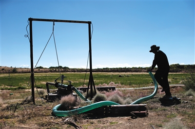 布日古德起動水泵,等了幾分鐘才有水上來,沒抽一會兒就沒水了,等一陣子才能繼續(xù)抽。