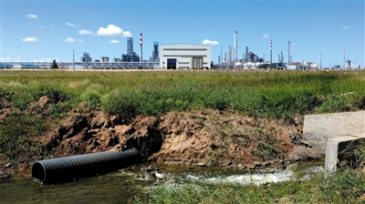 以前化工廠排污是明排,是通過這里的一根直徑半米多的管道排到化工園區(qū)外的一條溝渠里,流向查漢淖爾湖,溝渠穿過牧民的草場。后來牧民紛紛抗議,明排停止了。
