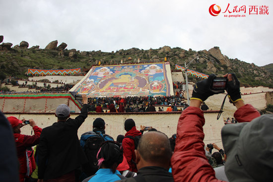 人民網(wǎng)拉薩8月25日電(記者 任曉攀)8月25日,2014拉薩雪頓節(jié)啟幕。早上8時(shí),拉薩哲蚌寺舉行盛大的展佛活動(dòng),吸引了數(shù)十萬(wàn)信教群眾和中外游客參觀膜拜,這也是雪頓節(jié)期間的重頭戲節(jié)目。