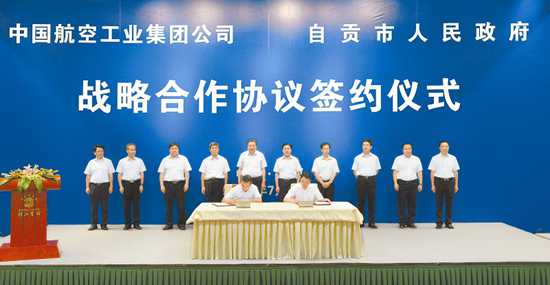 7月26日下午,中國(guó)航空工業(yè)集團(tuán)公司與自貢市政府在成都簽訂戰(zhàn)略合作協(xié)議,共建川南通用航空產(chǎn)業(yè)園,打造中航工業(yè)川西南產(chǎn)業(yè)集聚區(qū)。省委書記王東明、中航工業(yè)集團(tuán)公司董事長(zhǎng)林左鳴出席簽約儀式,并現(xiàn)場(chǎng)見證合作協(xié)議簽署。