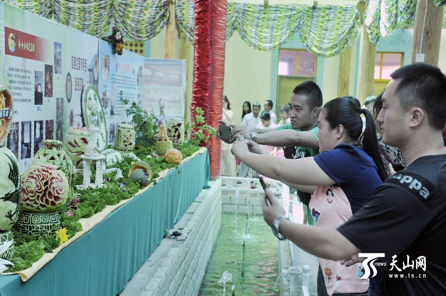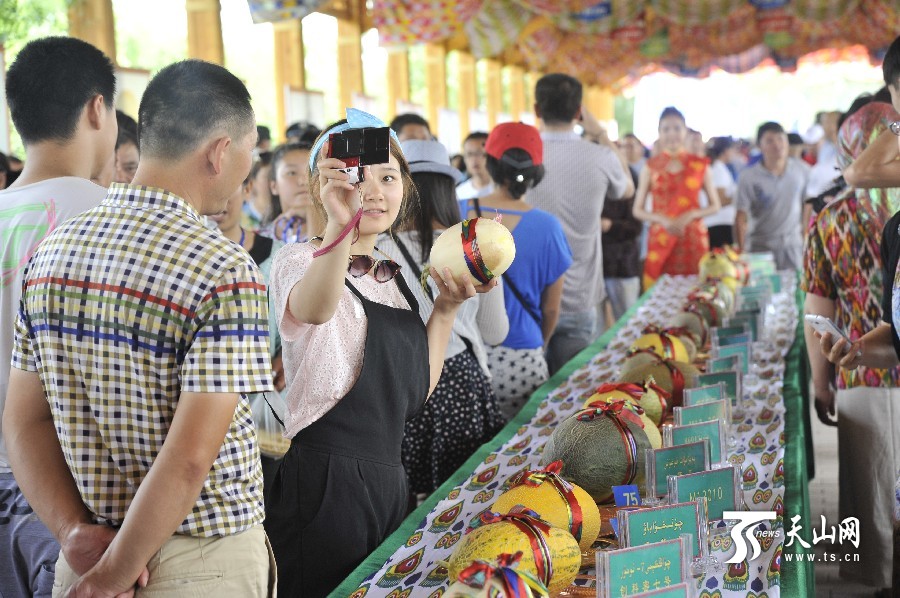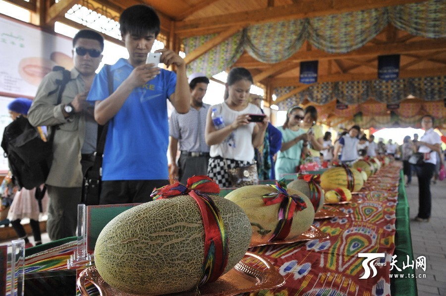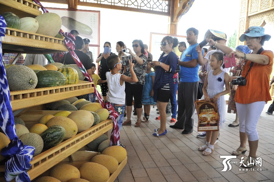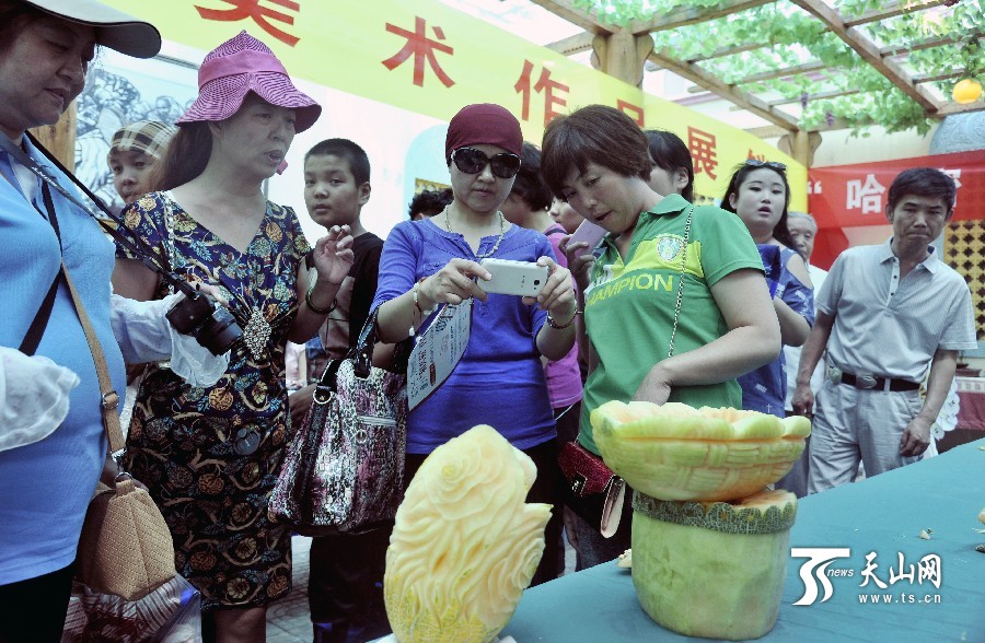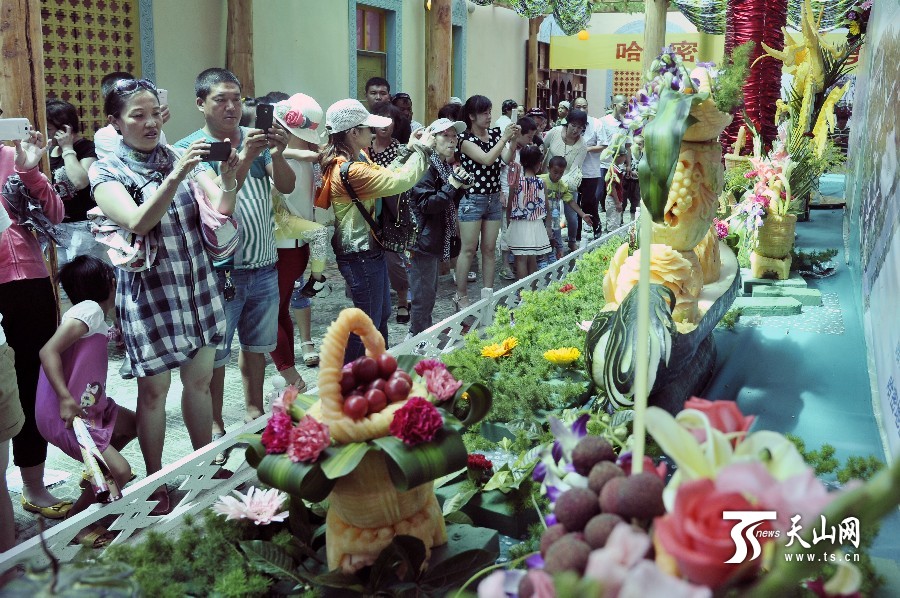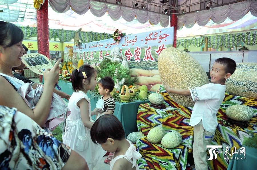 天山網(wǎng)訊(通訊員魏聚山攝影報(bào)道)7月18日上午,中國(guó)·哈密“甜蜜之旅”第十一屆哈密瓜節(jié)在新疆哈密市貢瓜園盛大開幕。本屆哈密瓜節(jié)共設(shè)有品瓜賽瓜會(huì)、瓜雕大賽、手工藝展等10項(xiàng)精彩紛呈的活動(dòng)供游客參與。品瓜賽瓜會(huì)在瓜園品瓜長(zhǎng)廊舉行,有130種哈密瓜供游客觀賞、品嘗。哈密瓜雕大賽呈現(xiàn)出形態(tài)各異、獨(dú)具匠心 的瓜雕技藝,使哈密瓜與雕刻藝術(shù)完美結(jié)合。據(jù)了解,本屆哈密瓜節(jié)將持續(xù)到7月22日。