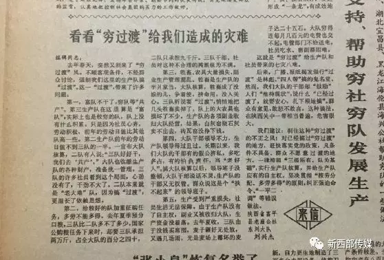 對于安徽農(nóng)村自發(fā)形成的包產(chǎn)到戶經(jīng)營形式,各地之間的理解和認識是不同的,因而出現(xiàn)了各省之間決策的不同和發(fā)展速度的快慢之分。陜西省有些地方受極“左”路線影響比較深, 反應遲鈍, 行動遲緩。1979年1月4日,《人民日報》發(fā)表了富平縣老廟公社東劉大隊劉興杰的來信,批評1978年春天他們那里刮起的“窮過渡風”,說窮過渡給生產(chǎn)帶來了災難:“富隊不干了,窮隊等苦了,多勞不能多得,牲畜、農(nóng)具大量丟失,副業(yè)生產(chǎn)管理混亂;大隊干部領導不力,小隊干部得過且過,生產(chǎn)遭到嚴重損失,社員生活無法保證?!边@封信反映的問題雖然不能代表當時陜西農(nóng)村的全貌,但說明部分農(nóng)村干部思想還沒有擺脫“左”傾路線的束縛。全國農(nóng)村大包干責任制已經(jīng)在轟轟烈烈地開展,而陜西某些縣,比如富平、長安、臨潼還在搞“窮過渡”。