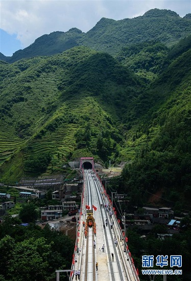當(dāng)日,經(jīng)過中鐵五局員工8個月緊張建設(shè),滬昆高鐵貴州西段最后一段500米長鋼軌順利鋪設(shè)至滬昆高鐵全線第一長隧道壁板坡隧道洞口前,至此滬昆高鐵貴州西段與云南段勝利接軌,為下半年聯(lián)調(diào)聯(lián)試和通車運(yùn)營奠定堅(jiān)實(shí)基礎(chǔ)。目前,滬昆高鐵全段僅剩貴陽站到貴安站間20余公里未鋪軌,全線鋪軌完成在即。滬昆高速鐵路客運(yùn)專線東起上海,西至昆明,全長2264公里,設(shè)計(jì)時速300至350公里。
