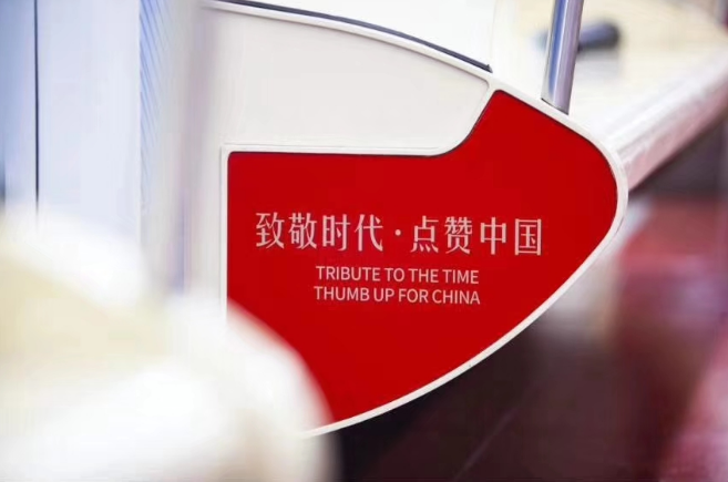 為慶祝中華人民共和國70周年華誕,人民日?qǐng)?bào)社陜西分社聯(lián)合西安市軌道交通集團(tuán)有限公司共同策劃在西安地鐵2號(hào)線推出“致敬時(shí)代·點(diǎn)贊中國”主題專列,并在行政中心站打造70周年主題車站。