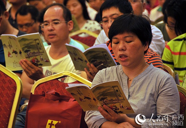 圖為全場人員朗讀《孝經(jīng)》(人民網(wǎng) 張紅璐/攝)