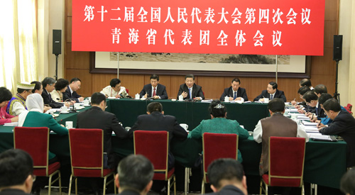 青海代表團(tuán)審議中,省長(zhǎng)郝鵬代表介紹了青海近年環(huán)境生態(tài)發(fā)展情況??倳涥P(guān)心地詢問青海保護(hù)生態(tài)環(huán)境、推進(jìn)中國(guó)三江源國(guó)家公園體制試點(diǎn)的情況。習(xí)近平強(qiáng)調(diào),一定要生態(tài)保護(hù)優(yōu)先,扎扎實(shí)實(shí)推進(jìn)生態(tài)環(huán)境保護(hù),像保護(hù)眼睛一樣保護(hù)生態(tài)環(huán)境,像對(duì)待生命一樣對(duì)待生態(tài)環(huán)境,推動(dòng)形成綠色發(fā)展方式和生活方式,保護(hù)好三江源,保護(hù)好“中華水塔”,確?!耙唤逅驏|流”。(人民日?qǐng)?bào)全媒體平臺(tái)記者倪光輝)