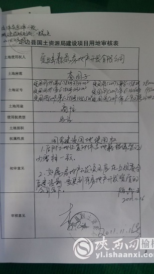 時任定邊縣國土資源局局長、現(xiàn)任榆林市國土局紀(jì)檢組長姬懷亮近日表示:當(dāng)時定邊縣重大項目土地審查由一李姓副局長負(fù)責(zé),假土地證并未在縣國土局出現(xiàn),而是由縣規(guī)劃局提交縣規(guī)委會,責(zé)任應(yīng)在規(guī)劃局。規(guī)劃局有審核土地證及審批表的職責(zé),沒有發(fā)現(xiàn)存在的問題。規(guī)劃局向規(guī)委會提交了假土地證手續(xù),應(yīng)該擔(dān)責(zé)。