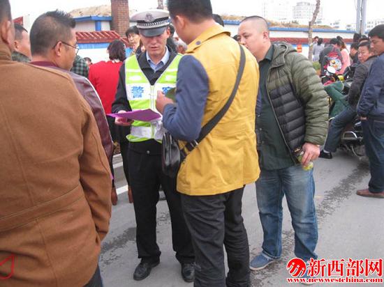 新西部網(wǎng)訊(記者馮永春)為了進一步做好校園安全防護網(wǎng)絡,倡導廣大家長朋友自覺遵守交通規(guī)則,文明交通行為,為孩子創(chuàng)造一個幸福和諧的家園;2015年11月9日下午,二大隊長城路中隊利用放學的時間廣為宣傳,為接送孩子的家長朋友們發(fā)放《致全市廣大中小學生及家長的一封信》以及《榆林市文明交通行為倡議書》等道路交通知識宣傳資料,并對部分家長的疑問作了一一解答。