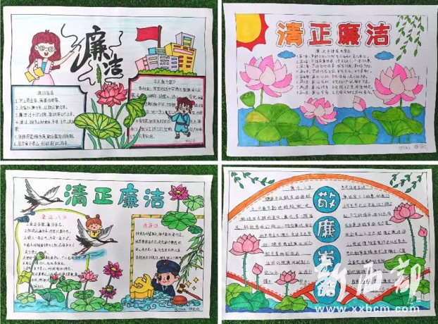 在學(xué)生中大力開(kāi)展良好行為習(xí)慣養(yǎng)成教育,使學(xué)生牢記《小學(xué)生守則》《中小學(xué)生日常行為規(guī)范》等規(guī)章制度,從小培養(yǎng)學(xué)生良好的規(guī)矩意識(shí)、清廉意識(shí)。各班組織學(xué)生創(chuàng)作以“廉潔”為主題的手抄報(bào)。學(xué)生們展開(kāi)豐富的想象力,以自己獨(dú)特的視角,稚嫩的手法,創(chuàng)作了一幅幅形式多樣、寓意深刻的廉潔手抄報(bào)作品,生動(dòng)展示了反腐倡廉的內(nèi)涵,表達(dá)出孩子們敬廉崇潔的心聲,使學(xué)生從小樹(shù)立崇尚廉潔意識(shí),長(zhǎng)大干凈干事、追求卓越、奉獻(xiàn)祖國(guó)的豪情壯志。