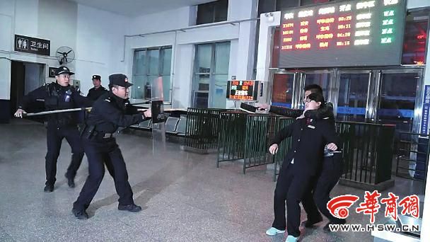 11月8日下午5時(shí)30分,米脂火車站發(fā)生“恐怖分子”砍人事件,現(xiàn)場有兩名“歹徒”手持管制刀具,挾持一名火車站工作人員,火車站工作人員立即向110、鐵路派出所報(bào)警,同時(shí)疏散群眾。