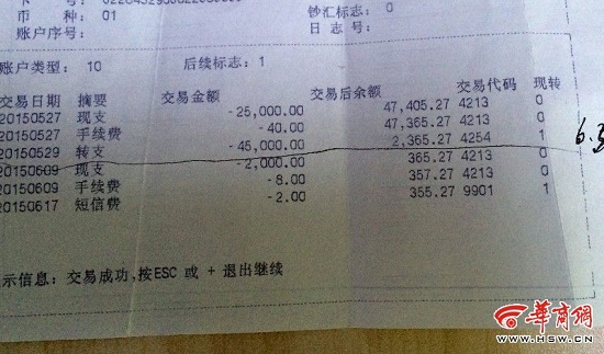 11月11日上午,華商記者在澄城縣城六路的農(nóng)行分理處了解王先生4.5萬元的去向,一位女工作人員說,已經(jīng)給王先生查說清楚了,他的錢今年5月29日下午打進的是一個尾號為7479的農(nóng)行賬戶,這個賬戶是澄城縣本地的名叫黨某的私人賬戶,其余涉及個人隱私不便透露。