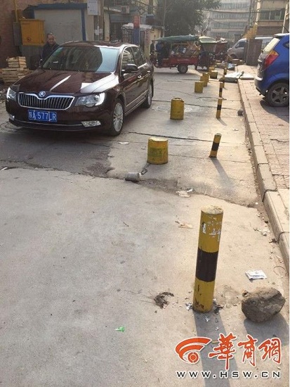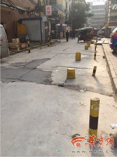 “這條巷子是進(jìn)出小區(qū)的必經(jīng)通道,巷子兩邊栽了兩排鐵樁和隔離墩,路面被占去很大一片,兩輛車并排通過時(shí)常發(fā)生刮擦?!?1月8日,家住南二環(huán)東段開元小區(qū)的李先生打進(jìn)華商報(bào)24小時(shí)新聞熱線029-88880000反映。