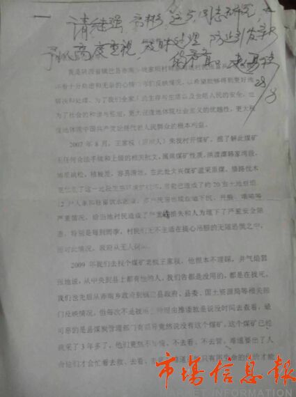 迫于危困的擔(dān)憂(yōu),2009年村民開(kāi)始上訪,但問(wèn)題仍未得到解決。無(wú)奈,2012年4月村民再次找到鎮(zhèn)巴縣委信訪辦,終于迎來(lái)了希望。同年8月28日,縣委書(shū)記趙勇健批示“予以高度重視,及時(shí)處理防止引發(fā)新的矛盾”。