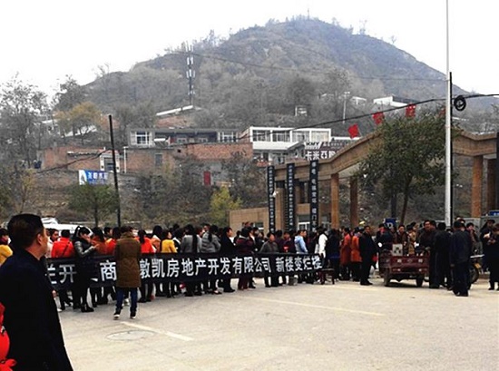 寶塔區(qū)大砭溝慧智藍(lán)灣小區(qū)業(yè)主集體走上馬路拉“橫幅”維權(quán)
