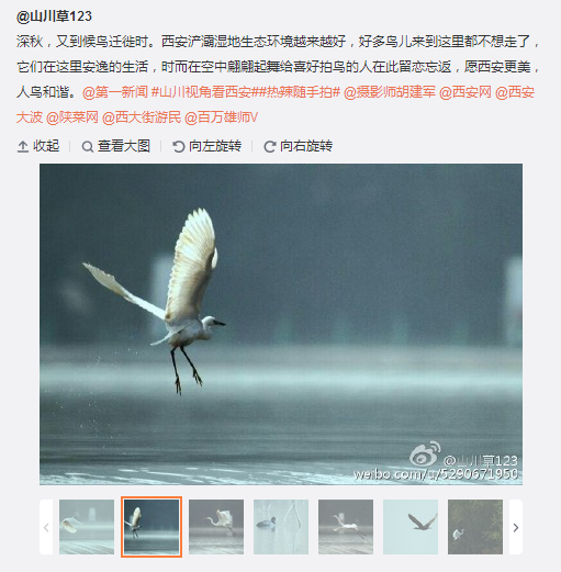 ?編者按:又到候鳥遷徙的季節(jié),浐灞濕地生態(tài)環(huán)境越來越好,鳥兒越會留連忘返,它們在這里安逸的生活,時而在空中翩翩起舞,時而在水中嬉戲打鬧,無人打擾,安然生活。愿西安生態(tài)環(huán)境更美,愿人與自然越發(fā)和諧。