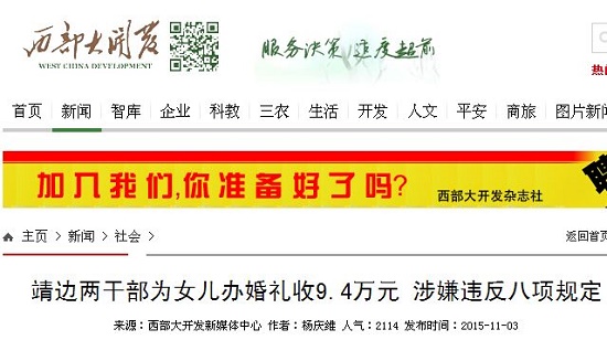 發(fā)稿前,本中心工作人員電話詢問調(diào)查情況,靖邊縣農(nóng)業(yè)局副局長周永平稱還在調(diào)查,靖邊縣稅務(wù)局副局長張東說,結(jié)婚的人親戚多,孩子多,那94000元的禮金是怎么收來的?