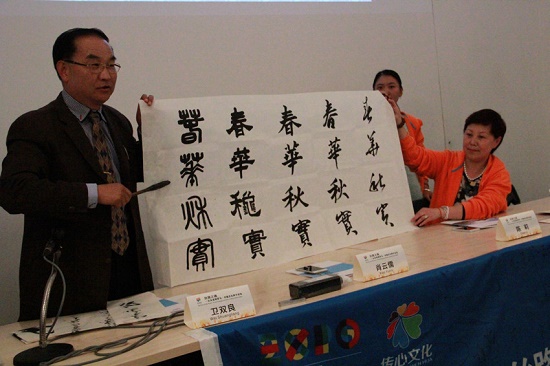 “2015米蘭世博會絲路之魂—從長安到羅馬”陜西代表團團長陳莉女士這樣說到:“我們團隊的主題是:絲路之魂—從長安到羅馬,今天我們來到羅馬的第一站就來到歐洲設計學院。書法是獨具中國特色的文化瑰寶,相信很多歐洲朋友都很感興趣。在我們陜西有很多未被發(fā)掘發(fā)展,卻驚世駭俗的文化作品和技藝。我們希望向世界大力推介這些優(yōu)秀的傳統(tǒng)文化藝術,讓各國的朋友在審美過程中獲得愉悅、感受魅力,加深對中國文化的理解和熱情?!?/p>