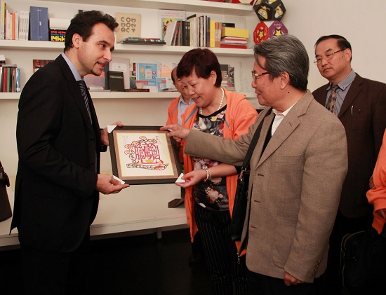 會上歐洲設計學院羅馬分校校長AntonioVenece先生說:“非常感謝陜西代表團的到來,讓我們今天近距離接觸到中國傳統(tǒng)文化,并擁有與大師學習書法的機會”。