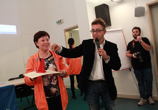 演講之后,“2015米蘭世博會絲路之魂—從長安到羅馬”陜西代表團團長陳莉女士與學生們發(fā)起互動,并為提問的同學贈送了獨具陜西文化特色的大雁塔立體卡片作為紀念禮物。活動尾聲,陜西代表團與意方嘉賓們合影留念。