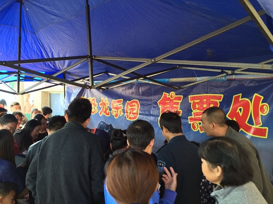 11月1日中午11時(shí)許,記者趕到渭南市經(jīng)開區(qū)恐龍樂園現(xiàn)場,售票處已有不少家長正在排隊(duì)買票。