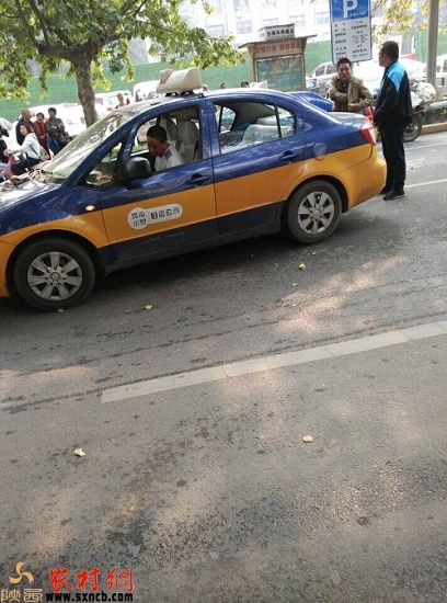 臨渭區(qū)東風(fēng)派出所門前肇事的出租車