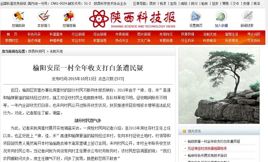 近日,榆陽(yáng)區(qū)安崖辦事處房崖村的部分村民不斷向陜西科技報(bào)反映稱(chēng):2013年由于“神、佳、米”高速和輸煤管道的路線經(jīng)過(guò)該村,施工對(duì)征收村民土地畝數(shù)未明,各隊(duì)林草地不明,征收期間賬務(wù)不明等,一年內(nèi)全部收支打白條,也未向村民公開(kāi)過(guò)賬務(wù)收支狀況,扶貧推進(jìn)項(xiàng)目變相修水壕等違法亂紀(jì)行為。對(duì)此,記者前往了解,調(diào)查。