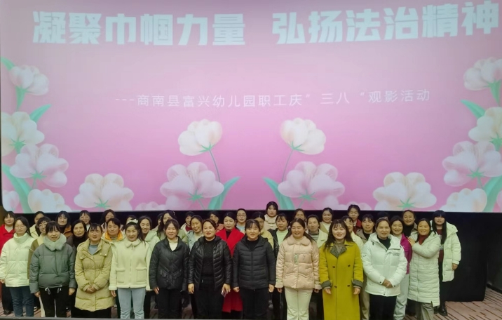 陽(yáng)春三月好時(shí)節(jié),凝心聚力正當(dāng)時(shí)。在第114個(gè)“三八”國(guó)際婦女節(jié)來(lái)臨之際,為豐富女職工的精神文化生活,營(yíng)造積極向上的生活工作氛圍,激勵(lì)廣大女職工昂揚(yáng)巾幗斗志、凝聚奮進(jìn)力量,3月7日晚,商南縣富興幼兒園組織開(kāi)展“凝聚巾幗力量 弘揚(yáng)法治精神 ”主題觀影活動(dòng),為全體女職工送去節(jié)日的祝福。