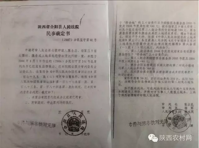 經(jīng)了解,此事的確經(jīng)歷曲折。2006年合陽縣人民法院民事判決書(2006)合民初字第246號(hào),法院認(rèn)為南太冊(cè)村第二村民小組擅自將康金房的責(zé)任田劃歸第三人趙會(huì)弟顯屬違法,侵犯了康金房的土地承包經(jīng)營權(quán)。2006年6月1日經(jīng)法院判決趙會(huì)弟在秋收結(jié)束后退還康金房位于“橋合地”2.4畝責(zé)任田。按說此事應(yīng)該到此結(jié)束,然而康金房耕種一年后,2007年6月5日,不知什么原因,法院又裁定中止原判決。