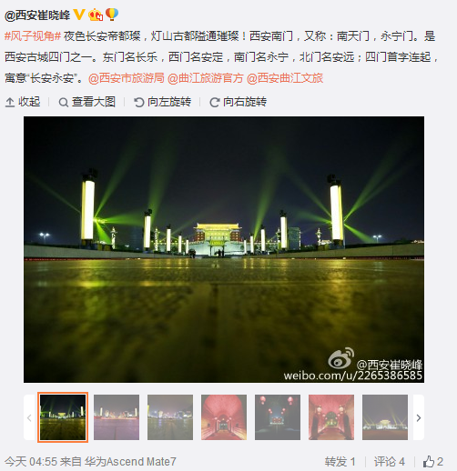 編者按:魅力上岸,夜色長安帝都璨,燈山古都隘通璀璨!西安南門,又稱:南天門,永寧門。是西安古城四門之一。東門名長樂,西門名安定,南門名永寧,北門名安遠;四門首字連起,寓意“長安永安”。