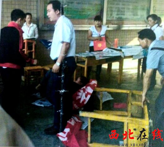 記者來到有教職工及學生1300多人的大荊中學。提及此事,李校長也很氣憤:本來好心讓他們來給學生辦保險,沒想到他們竟然在校園打架!8月30日一大早,我們在教學樓大門左右兩側(cè)給他們兩家安排了地方,也是方便他們來給學生辦保險,人保壽的桌子是我們給提供的,人壽來的遲,桌子是他們自己搬來的。打架原因主要是人壽那邊收100元,而人保壽這邊只收50元。中國人壽商州公司一個年輕副經(jīng)理李某竟然還跑到我的辦公室要求我讓人保壽撤出校園,我憑什么讓人家走?隨后不久,就有老師和學生喊著下面有人打架了,我出去一看,場面一片狼藉,非常生氣,就和學校老師,校警還有學生、家長把他們?nèi)哭Z了出去!