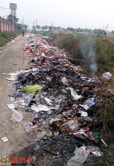 9月19日,記者在閻良區(qū)武屯鎮(zhèn)采訪時(shí)發(fā)現(xiàn),在武屯鎮(zhèn)南面的道路邊,建筑垃圾、生活垃圾清理工作仍處冰凍時(shí)期。在一家單位以西長(zhǎng)約二百多米的道路邊,各種垃圾緊貼著圍墻,在一丁字路口的拐角處,大量的垃圾讓人不得不掩鼻而過。由此繼續(xù)西行,記者來到工商所后面的一處空地上,上百米的生活垃圾更是讓人不堪入目。北頭一處正在焚燒的垃圾還在冒著青煙。由于垃圾中間有些積水,從而讓垃圾的臭氣飄出很遠(yuǎn)。一位由此路過的群眾向記者說,這個(gè)垃圾場(chǎng)已經(jīng)有些年歲了,一年到頭都是這個(gè)樣子。