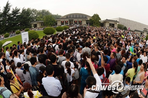 去年黃金周,秦始皇帝陵博物院共接待游客417382人次,其中10月3日當天接待人數(shù)突破10萬。