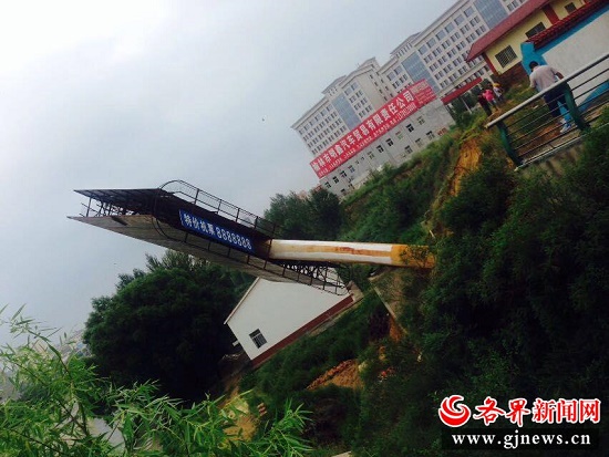 8月2日,位于長(zhǎng)城南路和富康交匯處的東北角,大風(fēng)把巨大的廣告牌子吹倒了。幸虧是牌子掉到了旁邊的溝里,所以沒(méi)造成人員傷亡,只是把一個(gè)檢查井給損毀了。倒在馬路上,來(lái)往車輛比較多,還有行人,實(shí)在太危險(xiǎn)了。