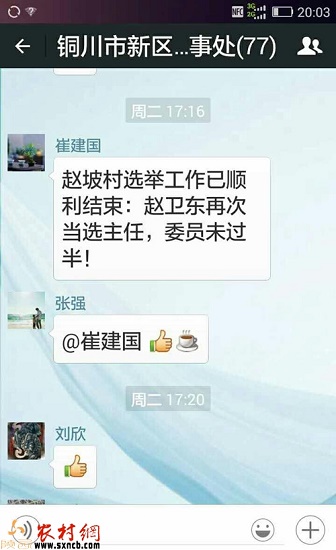 同時(shí)他還向記者出示了崔主任在街辦微信圈里的記錄,顯示:趙坡村選舉工作已順利結(jié)束:趙衛(wèi)東再次當(dāng)選主任,委員未過(guò)半!“街道辦領(lǐng)導(dǎo)前茅后盾的做法,真是讓人不可思議!”趙得耀一肚子的憤怒。