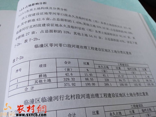 圖為臨潼零河零口段河流治理土地分類表