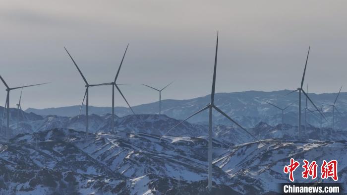 木壘縣山區(qū)風(fēng)場風(fēng)力發(fā)電機(jī)組。王夢君攝
