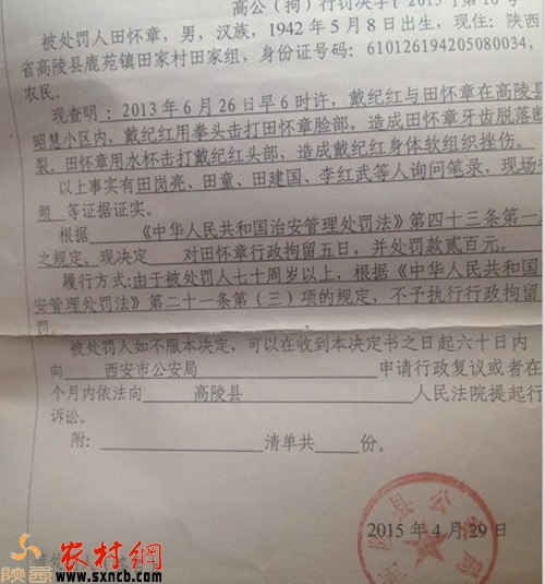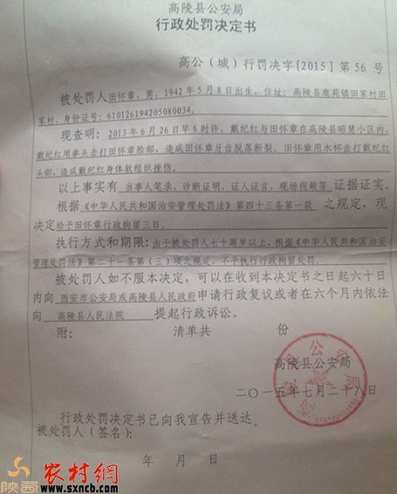 只因被人懷疑舉報多分房屋,高陵區(qū)(原高陵縣,下同)鹿苑鎮(zhèn)田家村村民田懷章與同村村民戴某發(fā)生口角并發(fā)展到廝打,被公安機關行政處罰后感到不滿。