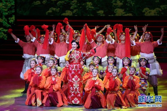 新華社照片,拉薩,2015年9月7日慶祝西藏自治區(qū)成立五十周年文藝晚會在拉薩舉行9月7日晚,慶祝西藏自治區(qū)成立50周年文藝晚會《中國夢·雪山歡歌》在拉薩舉行。這是演出現(xiàn)場。新華社記者謝環(huán)馳攝