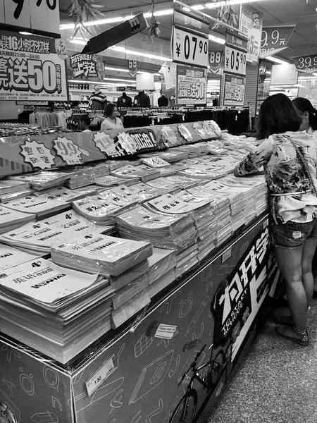 超市專柜的銷售人員向記者介紹說:“這幾天前來選購文具的人明顯增多,很多家長陪同孩子為新學期準備學習用具,消費幾十元到上百元不等,為了迎接新學期到來,超市還特意推出了很多優(yōu)惠活動?!庇浾攥F(xiàn)場看到,整套的雙面寫作業(yè)本只需要9.9元,原價5.7元的卷筆刀,現(xiàn)價為3.5元;一款文具盒原價20多元,促銷價為13元左右。