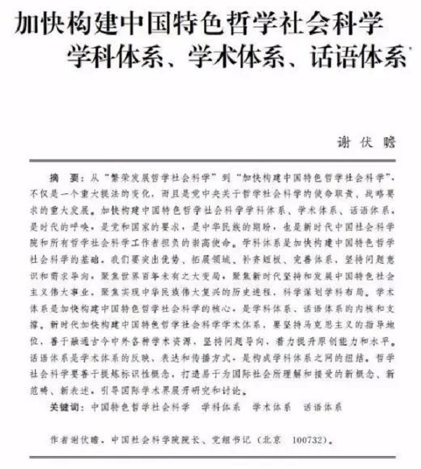 謝伏瞻:加快構(gòu)建中國特色哲學(xué)社會科學(xué)學(xué)科體系、學(xué)術(shù)體系、話語體系
