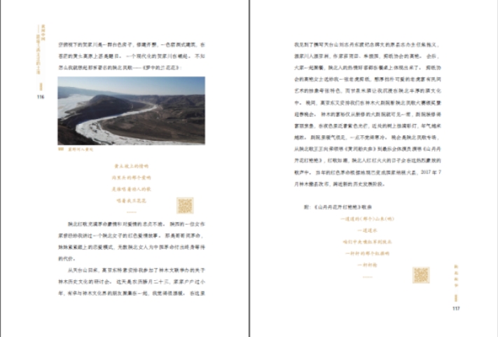 二維碼的嵌入,方便讀者掃碼聆聽書中歌曲,一曲曲民歌抑揚頓挫,讓讀者徜徉其中,感受黃河文藝帶來的聽覺盛宴。