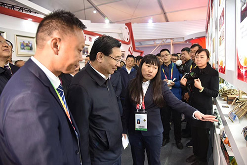 展會(huì)期間,省委書記胡和平、副書記賀榮、省委常委組織部長張廣智、副省長魏增軍等領(lǐng)導(dǎo)親臨第一書記成果展現(xiàn)場視察。在瓦鋪村展位,胡和平書記了解了第一書記周梅的履職情況,詳細(xì)詢問了該村扶貧產(chǎn)品“清酒”和“香菇”的生產(chǎn)、銷售,以及貧困戶增收及脫貧情況。周梅與瓦鋪村村委會(huì)主任李支清共同向參觀者介紹村里的扶貧及產(chǎn)業(yè)情況。
