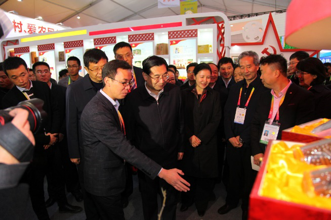 在本屆農(nóng)高會(huì)的所有展位中,以鮮艷的紅色為主題,由黨徽和五角星裝點(diǎn)的“陜西省駐村第一書(shū)記工作成果展”顯得別具一格。進(jìn)入展位后,胡和平首先來(lái)到駐村第一書(shū)記工作成果圖片展區(qū),通過(guò)照片了解全省第一書(shū)記的履職成效和幫扶成果。