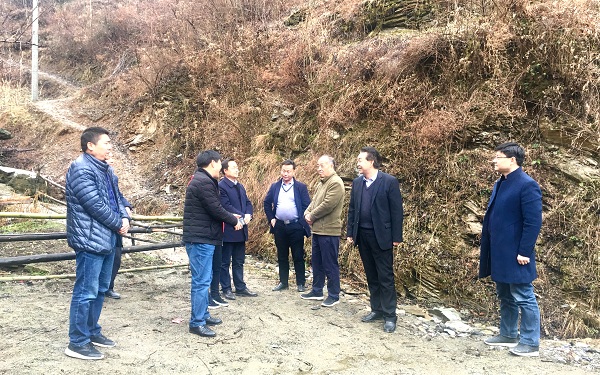 安康市委副秘書長(zhǎng)蘇利杰(左五)和市脫貧辦常務(wù)副主任劉子龍(左三)等在瓦鋪村調(diào)研指導(dǎo)脫貧攻堅(jiān)工作。