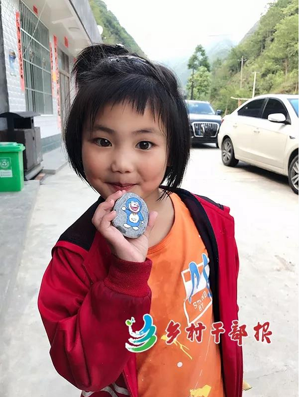 村里的孩子收到周梅送的石頭畫(huà)樂(lè)開(kāi)了花
