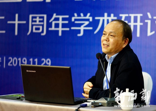 新西部網(wǎng)西安11月29日消息(記者楊旭民)2019年是國家實施西部大開發(fā)戰(zhàn)略二十周年。為了全面總結(jié)西部大開發(fā)二十年的偉大成就,并對西部大開發(fā)的未來發(fā)展提出對策建議,11月29日,陜西省社會科學院舉辦了“新時代 新西部 新格局——紀念西部大開發(fā)二十周年學術(shù)研討會”。研討會由陜西省社會科學院副院長白寬犁主持,陜西省社會科學院黨組書記、院長司曉宏,陜西省決策咨詢委員會副主任、省人大原副主任李金柱分別致辭,來自省內(nèi)外社科研究機構(gòu)、高等院校、黨校系統(tǒng)的專家學者80余人圍繞西部大開發(fā)二十年的回顧與展望,西部如何實現(xiàn)大保護、大開放與高質(zhì)量發(fā)展,發(fā)揮共建“一帶一路”引領(lǐng)帶動作用與西部陸海大通道建設(shè)等熱點話題進行了深入研討和交流。