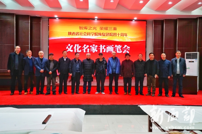 新西部網(wǎng)西安12月5日消息(記者王順利)“智庫之光榮耀三秦·文化名家書畫筆會(huì)”今天在陜西省社會(huì)科學(xué)院成功舉辦,中國美術(shù)家協(xié)會(huì)理事、陜西省美術(shù)家協(xié)會(huì)名譽(yù)主席、長安畫派藝術(shù)研究院院長、著名畫家趙振川,陜西省書法家協(xié)會(huì)名譽(yù)主席、陜西省望賢書學(xué)會(huì)會(huì)長、著名書法家李成海,陜西師范大學(xué)教授、著名秦隸研究專家李甫運(yùn),陜西省書法家協(xié)會(huì)副主席、陜西師范大學(xué)美術(shù)學(xué)院兼職教授、著名書法家路毓賢,陜西省文聯(lián)副主席、陜西省作家協(xié)會(huì)副主席、著名作家高建群,陜西省美術(shù)家協(xié)會(huì)理事、陜西國畫院特聘畫家王松,陜西省作家協(xié)會(huì)副主席、著名作家方英文,陜西省美術(shù)家協(xié)會(huì)副主席、陜西省美術(shù)博物館原館長、著名畫家羅寧,陜西師范大學(xué)美術(shù)學(xué)院教授、碩士生導(dǎo)師、著名畫家孫文忠,陜西省美術(shù)家協(xié)會(huì)理事、陜西省山水畫研究會(huì)主席、西安交通大學(xué)城市學(xué)院藝術(shù)設(shè)計(jì)系主任、著名畫家解安寧,陜西省美術(shù)家協(xié)會(huì)副主席、西安中國畫院院長、著名畫家王犇等省內(nèi)書畫界、文學(xué)界知名藝術(shù)家和作家蒞臨筆會(huì)。